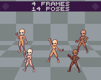 Folder contains 4 different skin tones of male and female versions. Plus an additional folder of five weapons. Weapons come in two images, one of the weapon in full (to be layered behind the character) the second which is broken up (to be layered over the character).
