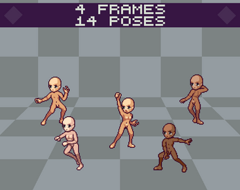 Folder contains 4 different skin tones of male and female versions. Plus an additional folder of five weapons. Weapons come in two images, one of the weapon in full (to be layered behind the character) the second which is broken up (to be layered over the character).
