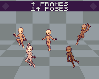Includes 14 rows of 13 poses and 1 credits section:
